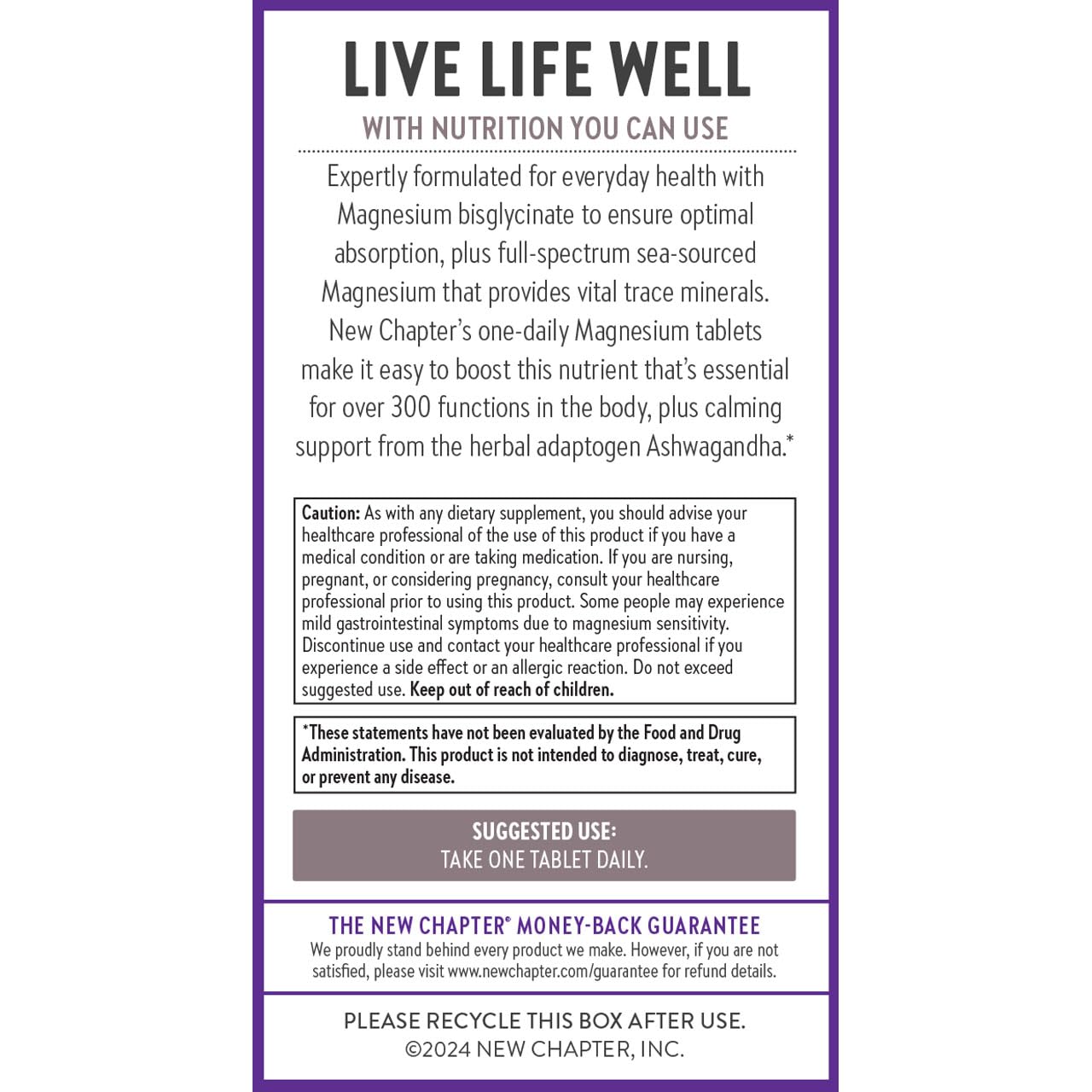 New Chapter Magnesium Glycinate with Ashwagandha for Muscle, Heart, Nerve and Bone Health