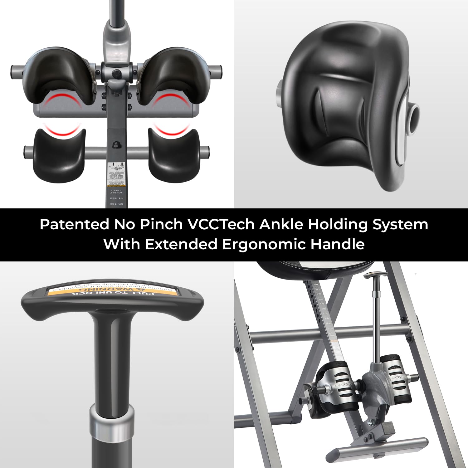 Ergonomic Ankle Support – The enhanced ankle-holding system features a larger front holder and smaller rear holder, reducing pressure on the ankles for a more comfortable and secure inversion experience. A longer ankle-holding knob allows for an easier release post-session.